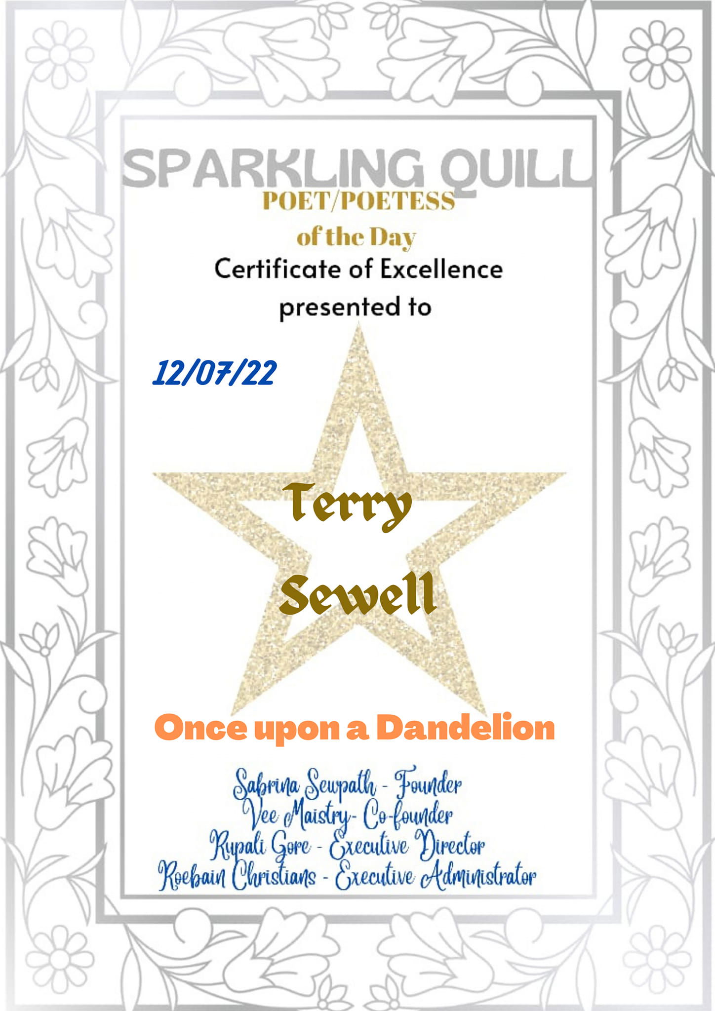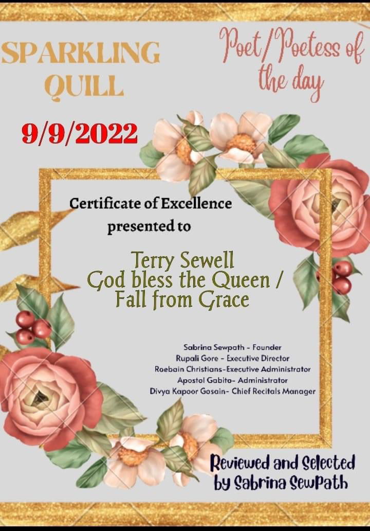 I still grieve for you don’t know why when nighttime falls stars shine I see your eyes twinkling bright you gave us… such delight a certain charm never doing any harm even on your darkest night remembering that smile your grace how you dressed in beautiful gowns of lace shining a light onto a troubled world you became our world our girl the fairy tale Princess nothing less giving hope to the world was what you did best but when the press turned it on you our angelic heart we waited with bated breath as your world fell apart our Princess of hearts… torn apart in a love of deceit by a cheat how could they treat our lady Dianna this way to suffer so much until finally… one day in a traffic accident Dianna passed away leaving all of England in tears to this day for the people's princess. © Terry Sewell 25/05/2020