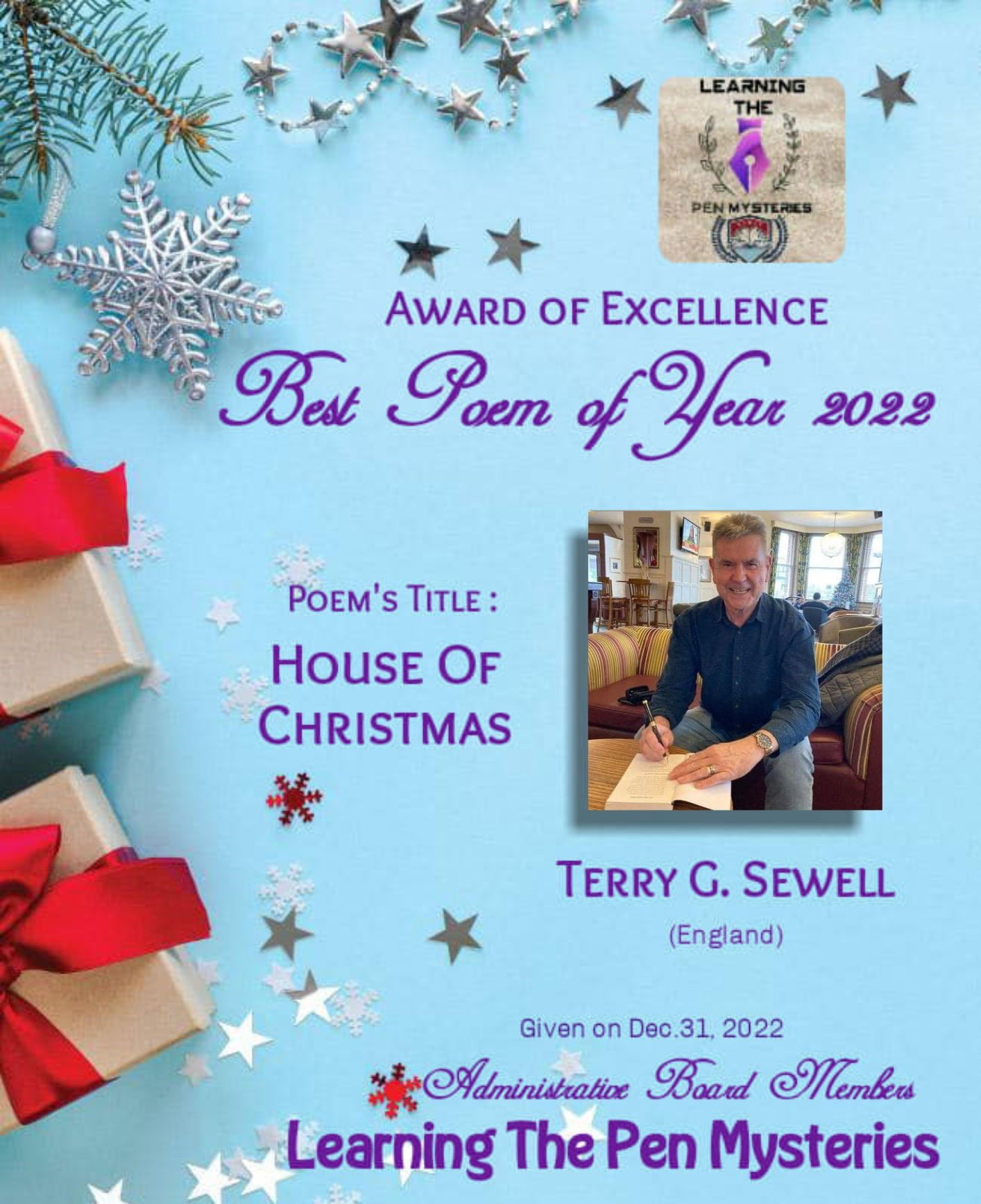 The old house on the hill- looks dark… dismal, with snow lying frozen- on its roof, unlike forty-years, ago- just where I’m now stood, icicles hang like stalactites- from the gutters all around, as the morning chill-factor- bites my bones… as I hear a familiar sound, it’s the gate- rotted now, yet still- it creaks and bangs, on the ground, scattered all about, rusty pots and pans- in the open- now derelict house, everything is smashed inside, unlike the day I moved in- with Bernadette my bride, the house was all shiny new- with all we ever dreamed, a time when life stood still… well, that’s what it seemed, I never thought- life was so short, never dreamed I’d feel… such pain, as I walk inside- the place I love… nothing seemed the same, mold and damp-filled the air… of once- a lovely domain, no sign of Bernadette’s vase- made from Crystal glass, or the diamond Bracelet- that never fit… no questions asked- I paid its price… but then she simply- lost it, it was just before she died, how she cried unable to find it… anywhere, but as I stand- on the broken floorboards… there’s something shining here, to my surprise- before my eyes… its Bernadette’s jewelry box, a bit of a mess- but none the less… diamond sequins- still embossed, opening up its lid- there’s nothing there… but a tiny note inside, words I wrote- some time ago… that having read-I just cried, it said… I loved you the day we met, Bernadette my dream come true, I’m yours always and forever… my whole life through. John xxx With eyes glazed, I was amazed- at the covered furniture… still in the dining room, awaiting my collection- but nowhere to store it… over the road- in the home, several strewn books- lay across the floor… in serious need of attention, pages opening and shutting- by a breeze… that’s getting my attention, almost… like an accordion, less… it's magical sound, a rusted yellow toy truck- one wheel missing… lay on the ground, unwanted- yet once so loved, upstairs looks bare and empty- but for an old trunk… which remains intact, Christmas decorations- perfectly preserved… in a thick-lined sack, pictures too- of the family… I still love and miss, from that very special time… of sheer bliss, I remember it- like yesterday- chestnuts roasting on the fire, the family and relations- forming a merry choir, a Christmas tree stood- with decorations all around… everyone singing carols- to my pianos sound, such festive magic- once upon a precious past… at the house of Christmas, in a time… that went too fast. © Terry Sewell 11/05/2020 Sharing content 1763233-2560x1440-[DesktopNexus.com] (2) made with Kapwing Video made on Kapwing
